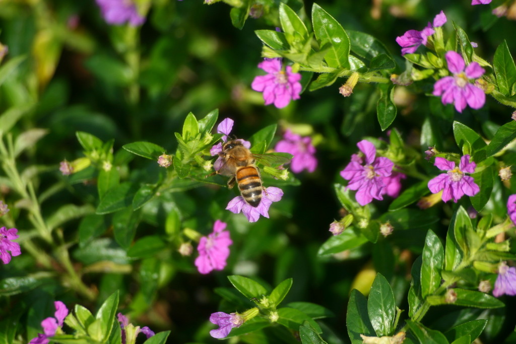 ▼細葉雪茄花種植於農田旁是相當美觀的低矮綠籬植物,可吸引大量的蜜蜂、蠅類等授粉昆蟲前來訪花。
