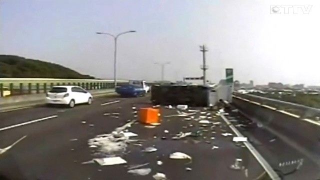 一輛滿載漁獲的小貨車經過台74線中彰快速道路「潭子往太平方向」時,疑似後輪爆胎,導致整輛車失控翻覆橫躺在路上,駕駛被拋飛出車外慘死,而另名20歲李姓乘客受到擦傷與撕裂傷,車上魚貨也散落一地。