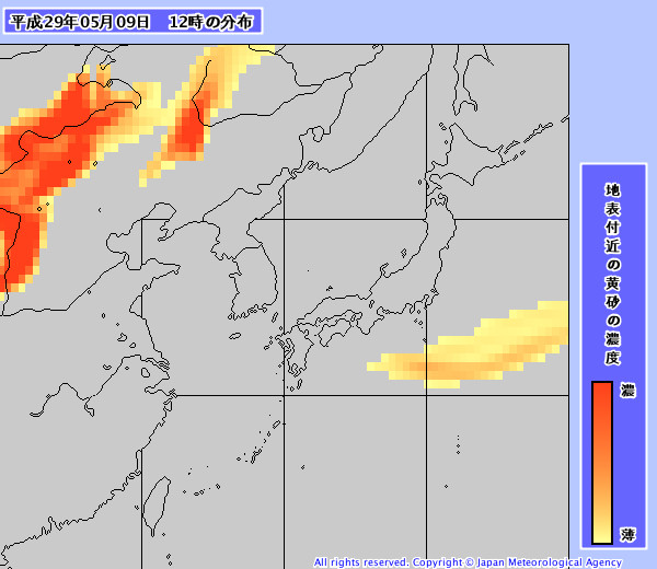 據《經濟新聞》報導,這樣的空氣品質讓住在日本西部的居民深感其受,位於九州的熊本市7日凌晨3點到6點的能見度已經下降到8公里,在能見度降到不到10公里時,從遠處就能清楚的看到灰灰霧霧的天氣;北海道、東北部、中部、關西地區和九州,都能觀測到攜帶沙塵的空氣;而群馬縣和茨城縣也能看到。