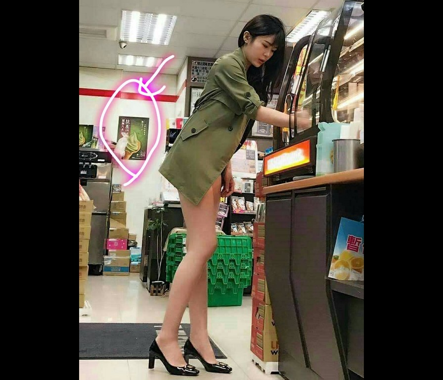 有網友轉分享一張照片,想問牆上貼的新款冰淇淋好吃嗎,不過醉翁之意不在冰,大家也完全沒看到冰淇淋,PO文引起3000多人討論,只見辣妹在超商買東西,露出超長美腿,外套巧妙地遮像是沒穿褲子。