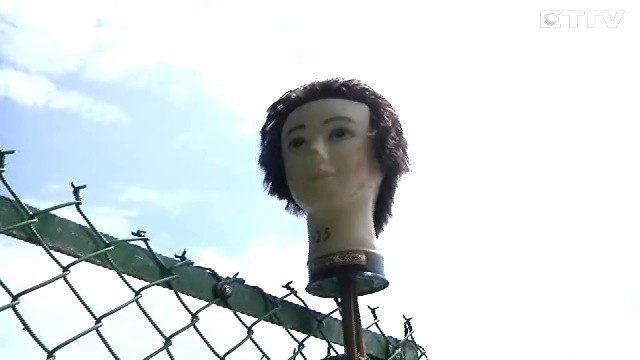這處地點位在蘇花公路144公里處,該處是大彎道,一旁有個較大的避車彎,假人頭就被人用竹竿高高懸掛在鐵絲網旁,竹竿底部還用布條綁緊固定。鐵絲網附近還有3顆已經破損無法使用的假人頭,顯然是有人故意擺放在這裡。