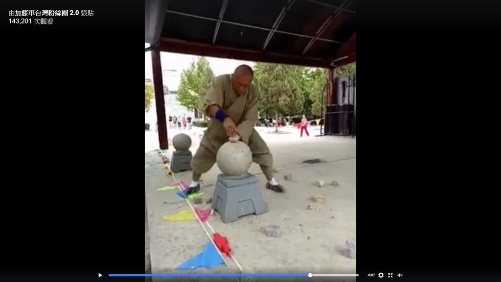 短短30秒的超狂影片,才上傳不到三小時,觀看人數已逼近15萬,其中不少網友紛紛現身在底下留言「如果他學的是太極拳,那就輕鬆多了」、「我以為他要把下面那一顆大圓球敲破呢」、「我等半天你沒有用頭」。