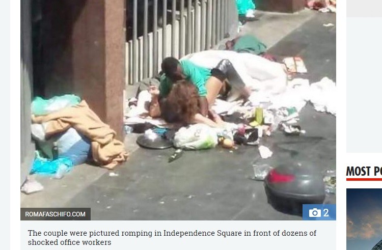 義大利羅馬獨立廣場是知名景點,許多遊客、市民人來人往,但是一對情侶卻被發現,在公車站牌附近的一處垃圾堆內當眾做愛,毫不畏懼路人們的目光。一位附近的上班族拍下照片後,在網路上廣為流傳,引起當地官員震怒。
