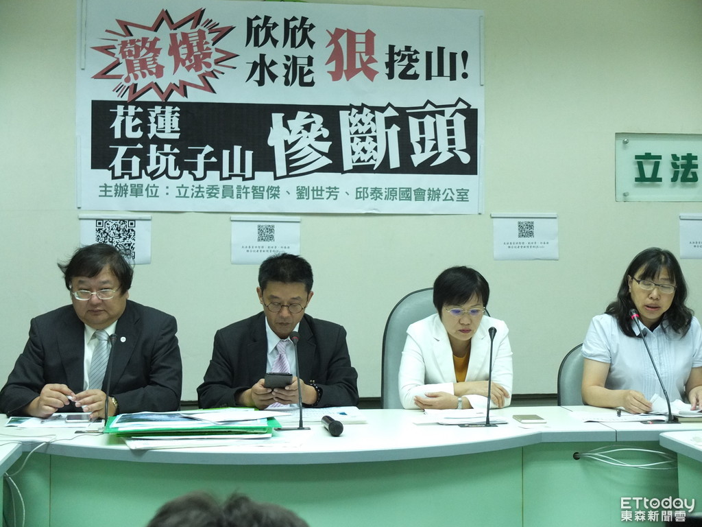 花蓮石坑子山遭亂開挖?民進黨立委許智傑、劉世芳、邱泰源12日在立法院舉行記者會, 有民眾檢舉,欣欣水泥公司在花蓮縣石坑子山開採水泥,把山「挖到斷頭」,更逕自以車輛開道運輸、破壞山林;但主管機關經濟部礦務局及農委會林務局竟認定此案無違法事實,因欣欣水泥公司大股東是國軍退除役官兵輔導委員會,許智傑、劉世芳、邱泰源批評是「官官相護」!
