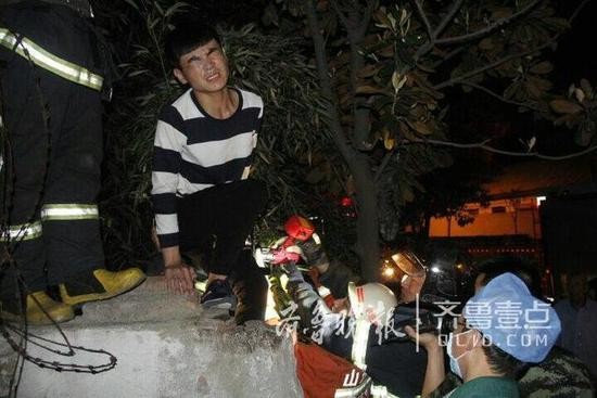 ▲高中生被卡在圍牆上。(圖/齊魯壹點,下同。)