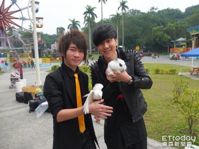 ▲ 學生魔術師張康曾指導藝人林俊傑魔術表演技巧。(資料照片,世新大學提供,下同)