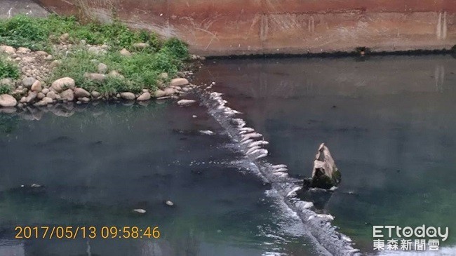 ▲不肖業者利用假日雨天偷排廢水造成魚屍漂浮河面,地方感到無力又無奈。(圖/吳進昌提供)