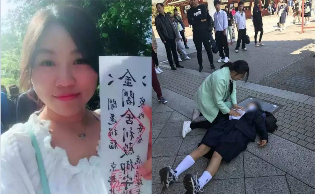 據《鄭州晚报》報導,任雙雙今年28歲,畢業後就在河南省腫瘤醫院擔任護士,與好友4月18日參加旅日的旅行團,在東京淺草寺周邊參觀時,突然聽見人群中傳出騷動,上前看見一位女學生渾身抽搐倒在地上,臉上冒出「黑點」還不停口吐白沫。