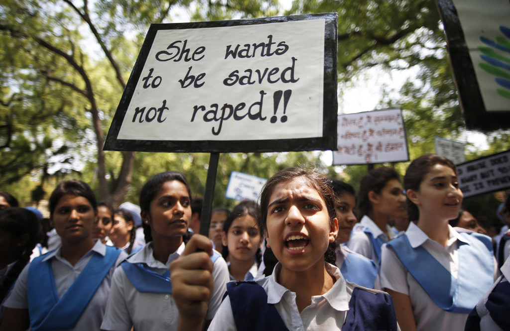 ▲印度女孩上街抗議層出不窮的強暴案件。(圖/非當事人/美聯社)