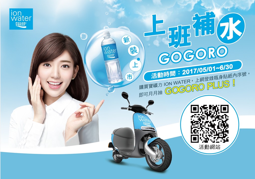 苦勞上班族天天卯足全力打拼,卻只能偷偷靠北慣老闆不加薪?5月偏偏又碰上報稅季節荷包大縮水,雙重打擊覺得自己靈肉已被榨乾……別怕!好運還沒走~ION WATER不只幫你補水打氣,新瓶裝上市活動,貼心端出以上班族通勤需求為考量的實用大禮,只要2017/5/1~6/30期間購買寶礦力IONWATER,上網登錄瓶身內貼紙序號,喝完飲料再動動手指,就有機會抽到夢寐以求的通勤配備GOGORO PLUS&限量安全帽。