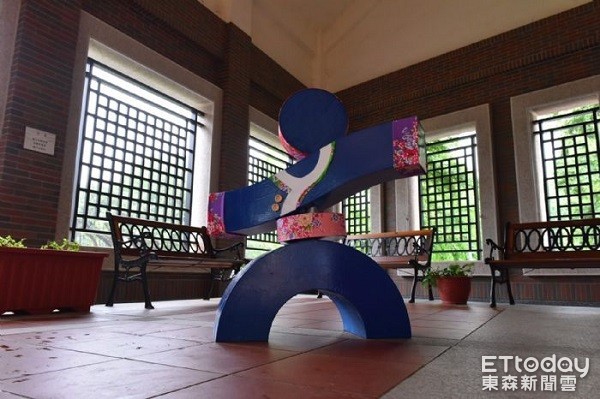 ▲創意客家裝置藝術作品,讓學生和居民隨時徜徉在客家氛圍中。(圖/桃園市政府提供)
