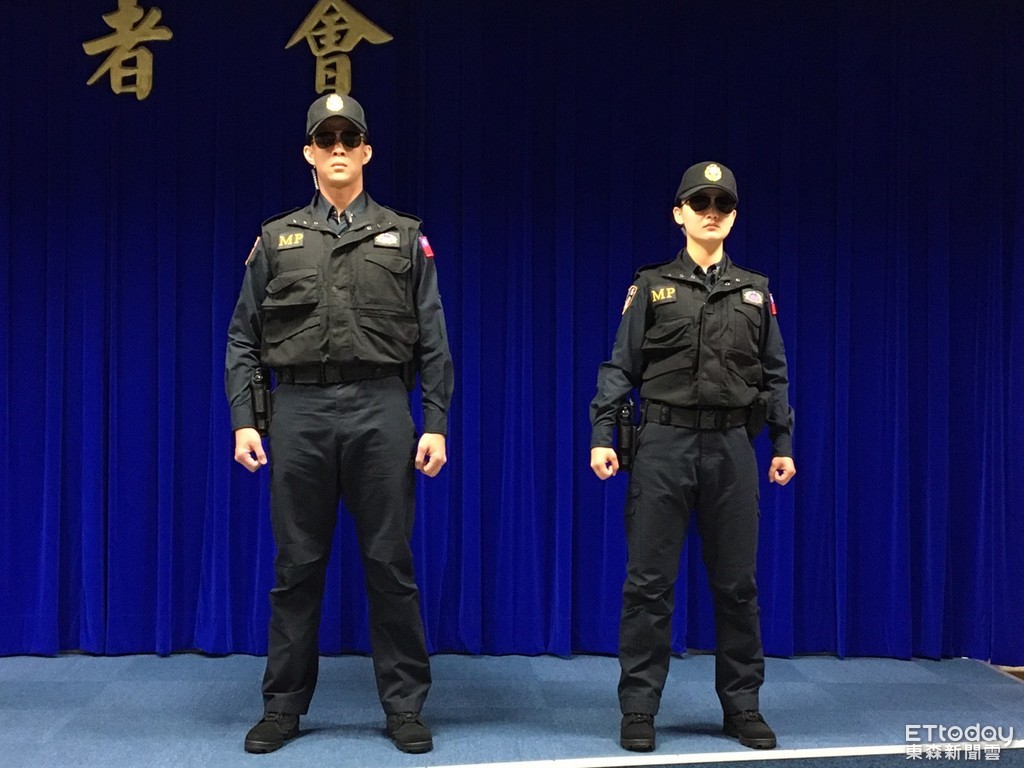 馮毅也說,新式勤務褲具耐磨損、防撥水,大腿外側設置口袋,據以提升實用功能,較以往穿著西褲比較,更能發揮運動間實用效果;勤務背心為兩肩設置肩帶,立領口裝設內藏式麥克風,背心採透氣網布設計,具耐磨損、防水油汙,透氣性佳,左胸前為「憲兵徽」,右胸前為「MP」字樣,背心後方上緣為「憲兵」字樣,服裝以黑色為主。