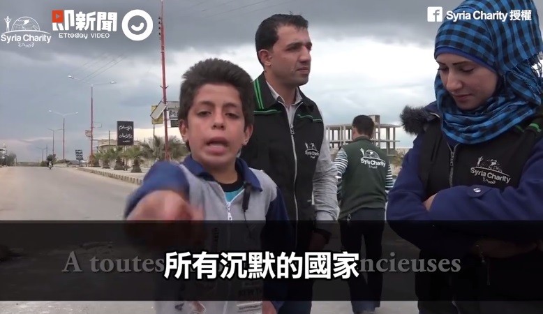 影片中可以看到,男童帶著救援團體看著化武攻擊的遺跡,失去家人的他雙眼中的憤怒藏不住,大聲的對著攝影機控訴,你有想像過失去父親、孩子的感受嗎?我們失去了整個家,「我們這邊每一天都有家庭破碎,但我們還是相信神」,「所有沉默的國家,清醒點吧」,你們應該把這訊息傳遞出去。