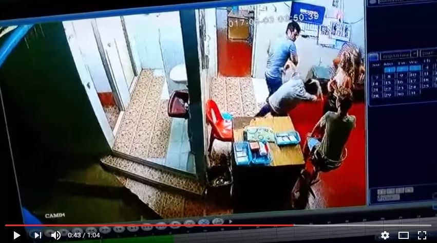 影片中,穿著條紋衣的男孩阿卜杜(Abdull Seesa)看到一名男子帶著2名金髮女郎走進室內,於是照例打算收取10泰銖的清潔費用,沒想到對方不但拒付,還一掌往他的頭巴去並搥打至倒地,害他摔倒在桌子與牆壁間的縫隙。