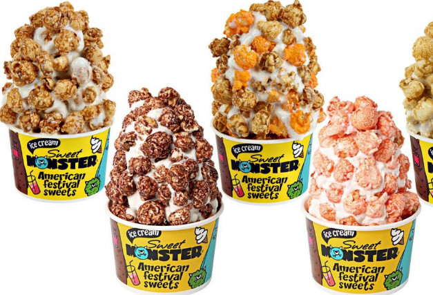來自首爾的冰淇淋品牌Sweet Monster,短短三年在南韓擁有超過20間分店,近年積極在鄰近亞洲市場泰國、新加坡、香港等設立經營據點。近期在IG人氣暴漲的「怪獸霜淇淋」因成分佔75%牛奶,加上非基因改造粟米製成的爆米花,賣相非常澎湃豐富,民眾另外還可選擇盒裝爆米花單吃,5種口味包括:巧克力、起司、焦糖、橘子、草莓等。