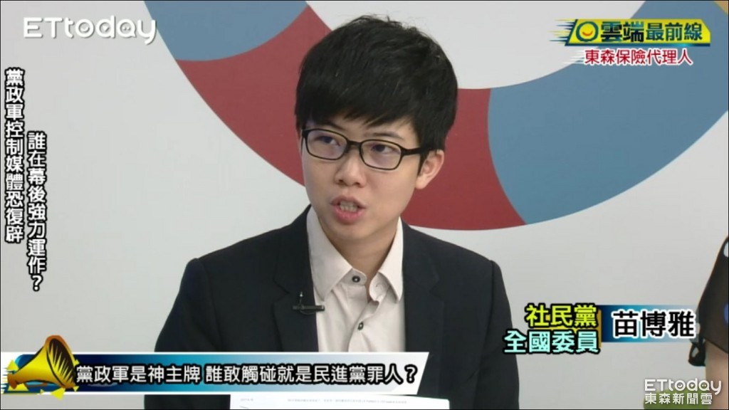 「台數科收購東森電視案」,台數科還款問題和黨政軍問題備受爭議。社民黨全國委員苗博雅今天(18日)在東森新聞雲的《雲端最前線》表示,金管會和國家通訊傳播委員會,都是代表人民的眼睛,用來監督金融業和媒體業,如果角色混淆,成為協助財團老闆賺錢的角色,將讓全民失望。
