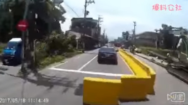 盧姓男網友在臉書不公開社團「爆廢公社」PO出影片,心有餘悸地說道:「騎著騎著就被攔車了,風很大為什麼護欄沒加水加重量,嚇死我了,等等我要真的栽下去,應該就是我『應注意未注意了』哈哈哈」。