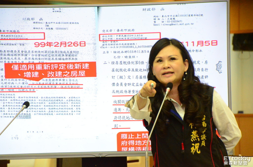 ▲台南市議員林燕祝痛批台南市長賴清德違法增稅。(圖/記者林悅攝)