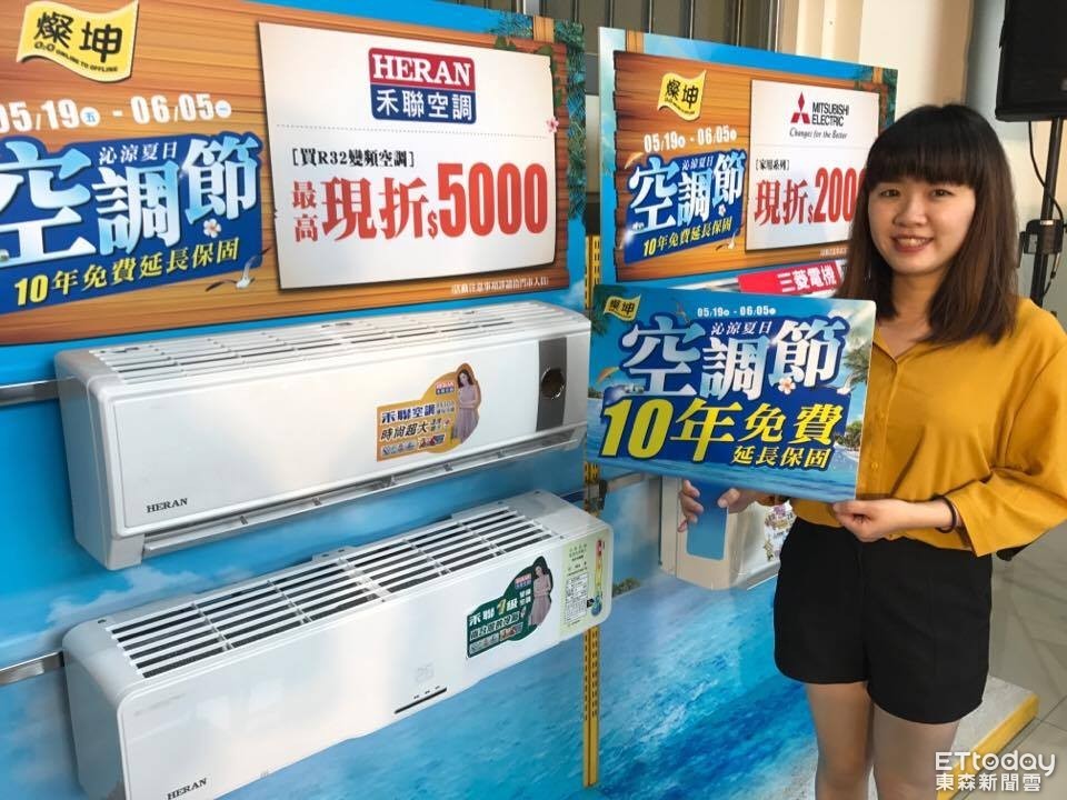 另外,燦坤自即日起至6/5推出「沁涼夏日空調節」,不僅祭出10年免費延長保固,更推出多項好康,包含購買七大品牌變頻空調免費EUPA智能冷氣遙控盒;全系列空調滿5萬再送金鑛飲料餐券一本等。燦坤表示,預估今年冷氣整體銷量可成長3成,並挑戰5成的成長目標。