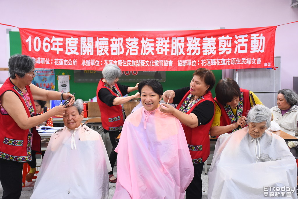 ▲花蓮縣原住民族髮藝文化教育協會部落義剪服務啓動,花蓮市長魏嘉賢到場體驗。(圖/花蓮市公所提供 下同)