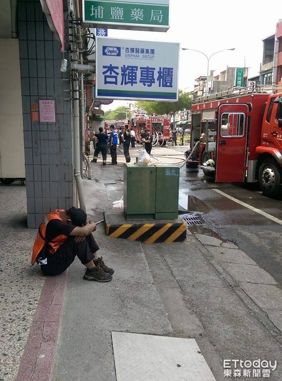▲消防員在路邊休息的身影。(圖/彰化縣政府消防局提供,下同。)