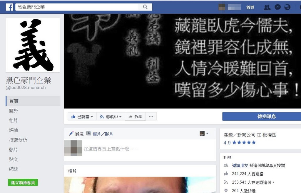 其實黑色豪門企業之前也有在奇摩家族成立,但當時被警方認為是犯罪組織,成為「高度重視」的掃黑對象,直到後來臉書興起,胡男才又以同樣名稱再創粉絲專頁,追蹤人數飆破24萬人次,還成為了警方蒐證的情資管道。胡男表示,許多民眾不報案就直接提供影像,他們能做的就是給一個網路平台。