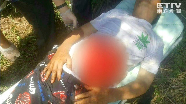 ▲蘇男左腹部大量出血,虛弱地倒臥在山區小徑。(圖/東森新聞)