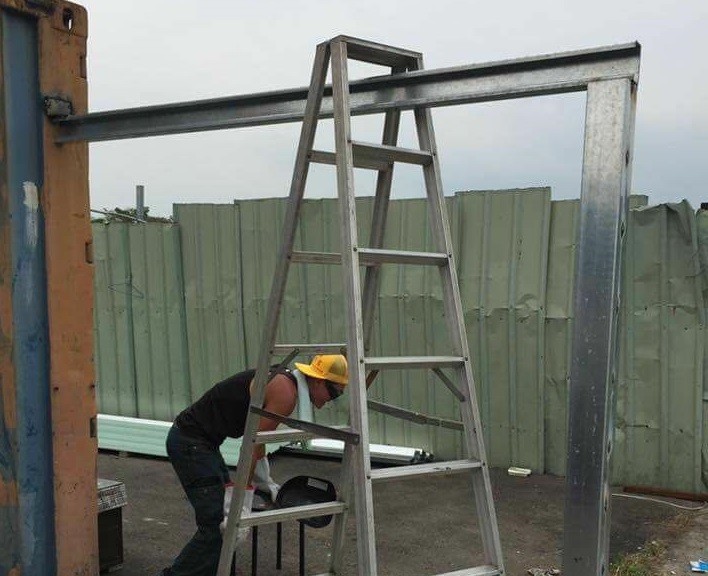 照片中只見一名工人似乎是做完工作,準被在收東西的樣子,乍看之下並不會察覺有什麼不妥的地方,不過仔細看了看,就會發現工人疑似剛做完鋼樑焊接後,沒有將工作梯收起來,反而是卡在鋼樑上,如果必須拿下工作梯,那就勢必要將鋼梁拆毀。