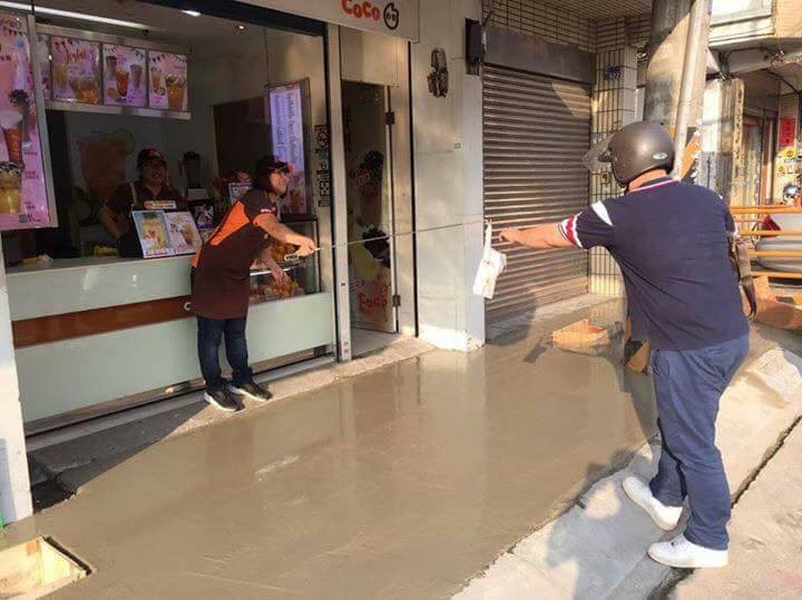 ▲手搖飲店門口水泥未乾,店長出奇招。(圖/翻攝自爆料公社粉絲團,下同)