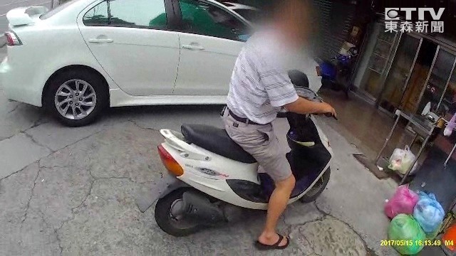 ▲林男因未戴安全帽、機車未懸掛車牌而遭警方攔下,進而查出失竊18年的贓車。(圖/東森新聞)