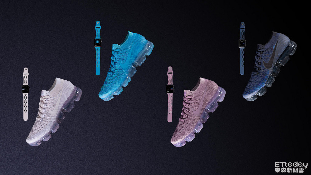 今年四月,Apple 和 NikeLab 發佈了限量版 Apple Watch NikeLab 之後,稍早,Apple 和 Nike 公司又宣布,雙方共同為 Apple Watch Nike+ 推出 4 款全新 Nike 運動錶帶,以不同顏色搭配 Nike Air VaporMax Flyknit Day To Night 系列。