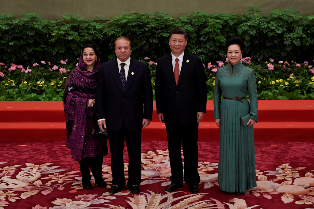 ▲巴基斯坦總理Minister Nawaz Sharif(左2)出席北京「一帶一路」國際高峰論壇,在會上與習近平合影。(圖/路透社)