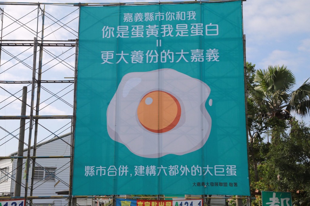 蔡政府推出8年8800億元前瞻基礎建設計畫,其中軌道建設預算占最大宗,引發各界議論;前副總統呂秀蓮日前更投書媒體,直言政院搞前瞻,不如將台灣的行政區域重新規畫。值得注意的是,今晨嘉義市也出現多個署名「大嘉義大發展聯盟」的看板,寫下「縣市相『嘉』、資源擴大」等,呼籲縣市合併、共榮大利。