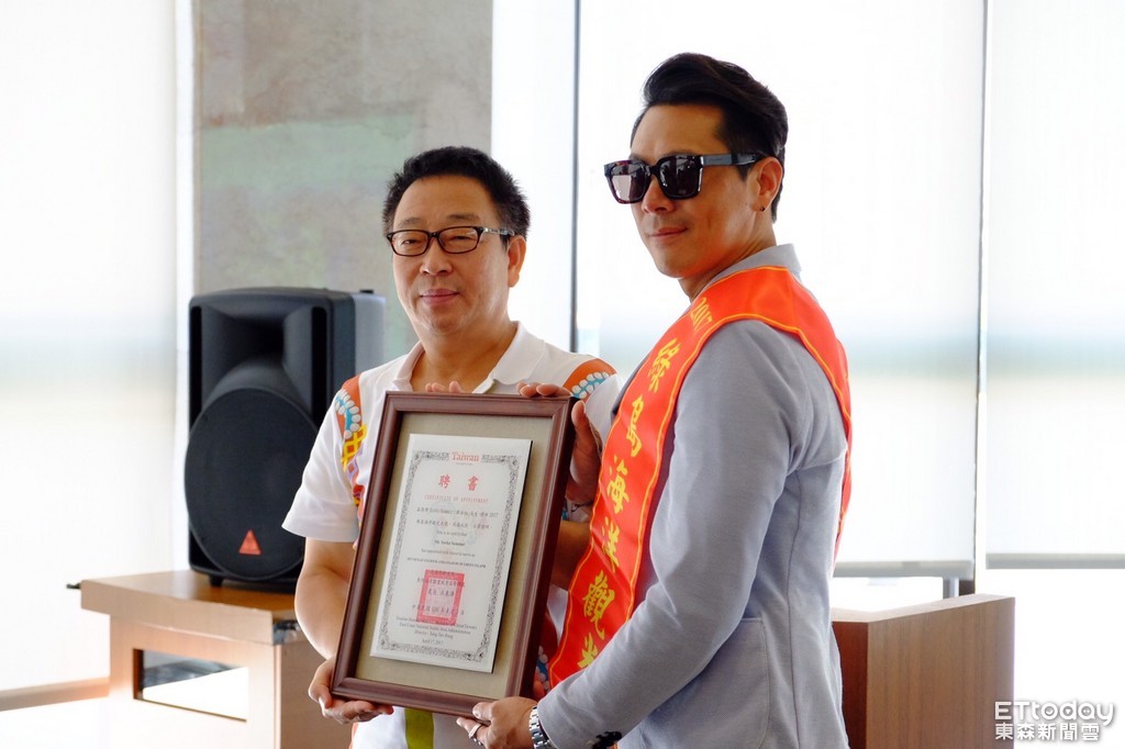 ▲東管處處長洪東濤頒發「2017年度綠島海洋觀光大使」聘書給 廖佑桓(Yorko Summer),並為其披上大使彩帶。(圖/東管處提供 下同)