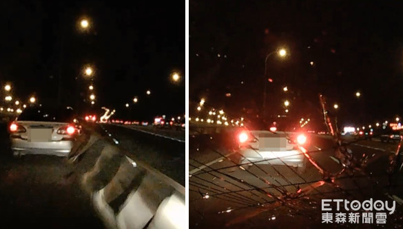 新北市一名男子日前夜間行車,經國道一號北上五股剛上汐五高架路段時,前方轎車不慎壓到一把鋁梯,讓梯子應聲飛起,他根本來不及反應,就當場被「飛梯」迎面撞上,擋風玻璃撞出一個大洞,氣得大罵「X你娘!」
