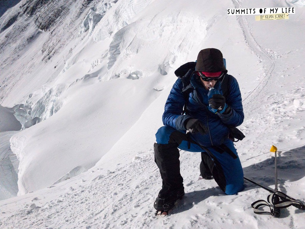 西班牙29歲的基爾安(Kilian Jornet)在當地時間22日以26小時成績成功登上海拔8848公尺的聖母峰頂,也是全程沒有使用固定繩索及氧氣瓶,又最快速度登頂的人,並也刷新了紀錄;1986年,來自瑞士的登山客吉恩(Jean Troillet)與艾哈(Erhard Loretan),他們就曾不用繩索及氧氣瓶登聖母峰,來回花費43個小時。據了解,當高度8000公尺以上時,氣溫會下降到零下40度,登山客都稱那片區域為死亡區。