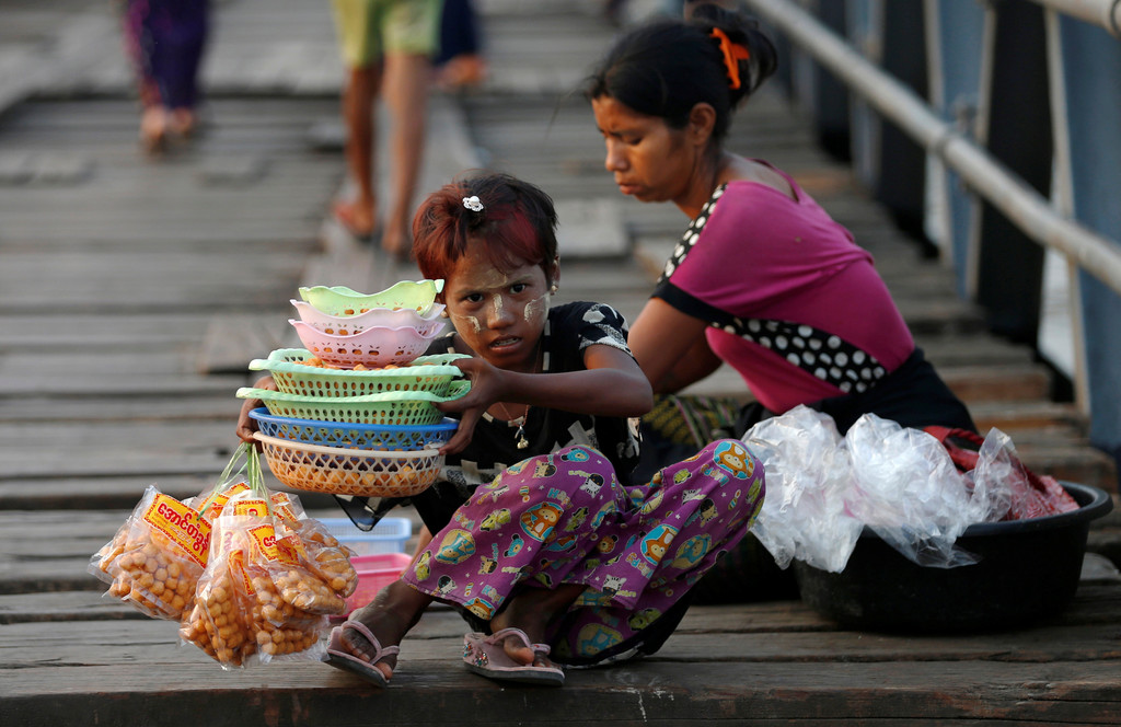 ▲緬甸兒童在河邊向遊客推銷海鷗飼料。(圖/路透社,下同。)