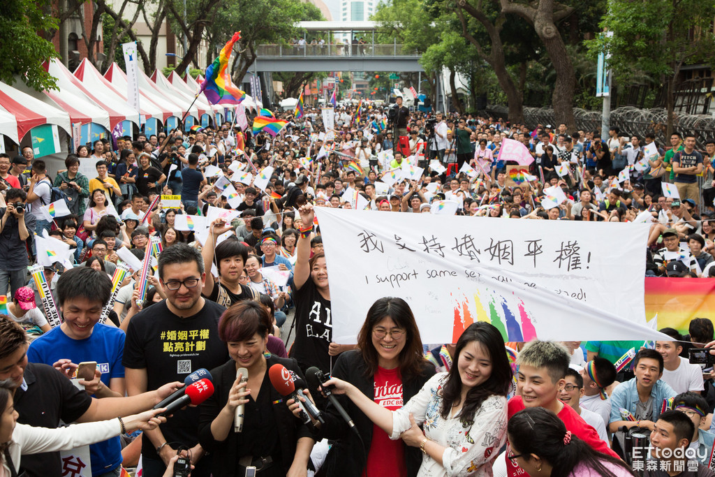 司法院大法官釋字第748號解釋,《民法》中「1男1女」才能結婚等規定違憲。包括CNN、BBC、法新社、路透社、美聯社與日本媒體前來採訪,並紛紛於第一時間報導釋憲案結果。