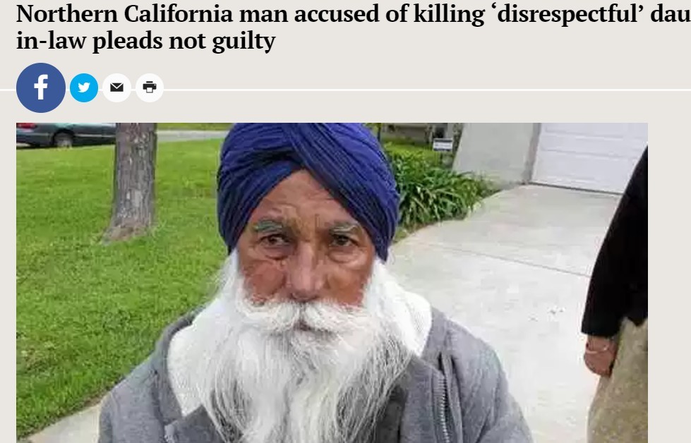 美國北加州63歲印度裔男辛格(Amarjit Singh)被控用鐵鎚謀殺29歲媳婦,只因為不滿對方對他的態度不敬,便在車庫中用鐵鎚把人打到爆頭,被捕接受警察偵查時曾承認人是他殺的,但25日出庭時卻又否認謀殺。