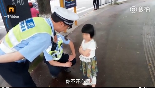 根據《梨視頻》影片顯示,民警蹲在小女孩旁邊,輕聲細語地與她溝通,「爸爸媽媽叫什麼名字啊?告訴叔叔,叔叔幫妳找過來好不好?爸爸媽媽電話號碼記不記得?告訴叔叔,叔叔給他打電話…」沒想到小女孩不領情,轉身就走,民警跟上去,她還小跑步了起來。