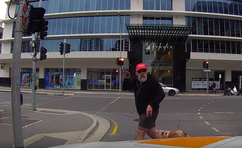▲遛狗老伯只顧「教育」駕駛,結果下場超級糗。(圖/翻攝自YouTube)