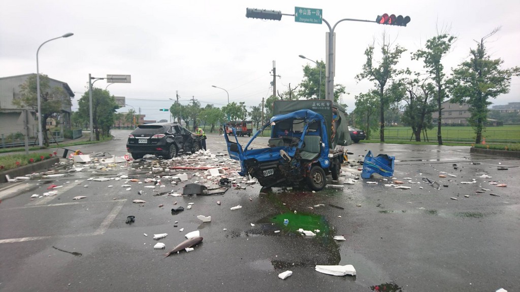 連假清晨車禍!一名蔡姓女子駕駛休旅車由環市東路往環市南路前進,但疑似遇上紅燈沒有停下,因此撞上由中山路往南行駛、未減速的貨車,2車相撞後車體嚴重損毀,魚貨也散落一地,吳姓貨車司機送醫後急救無效身亡,蔡女則是輕傷。