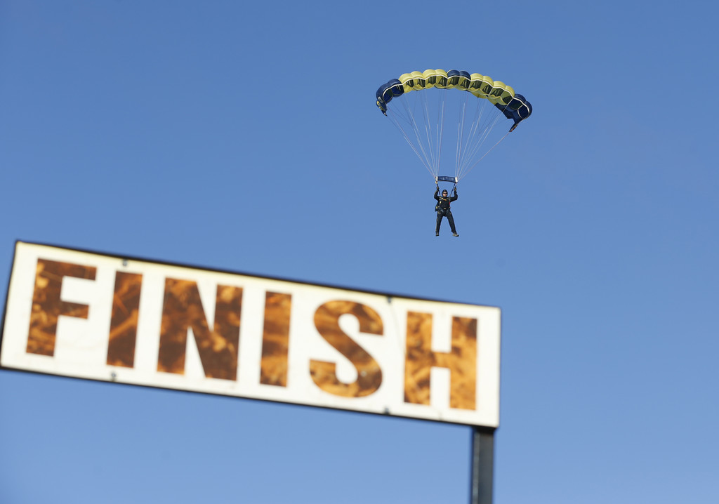 ▼黃藍相間的傘翼上印有美國海軍「NAVY」。(圖/達志影像/美聯社)