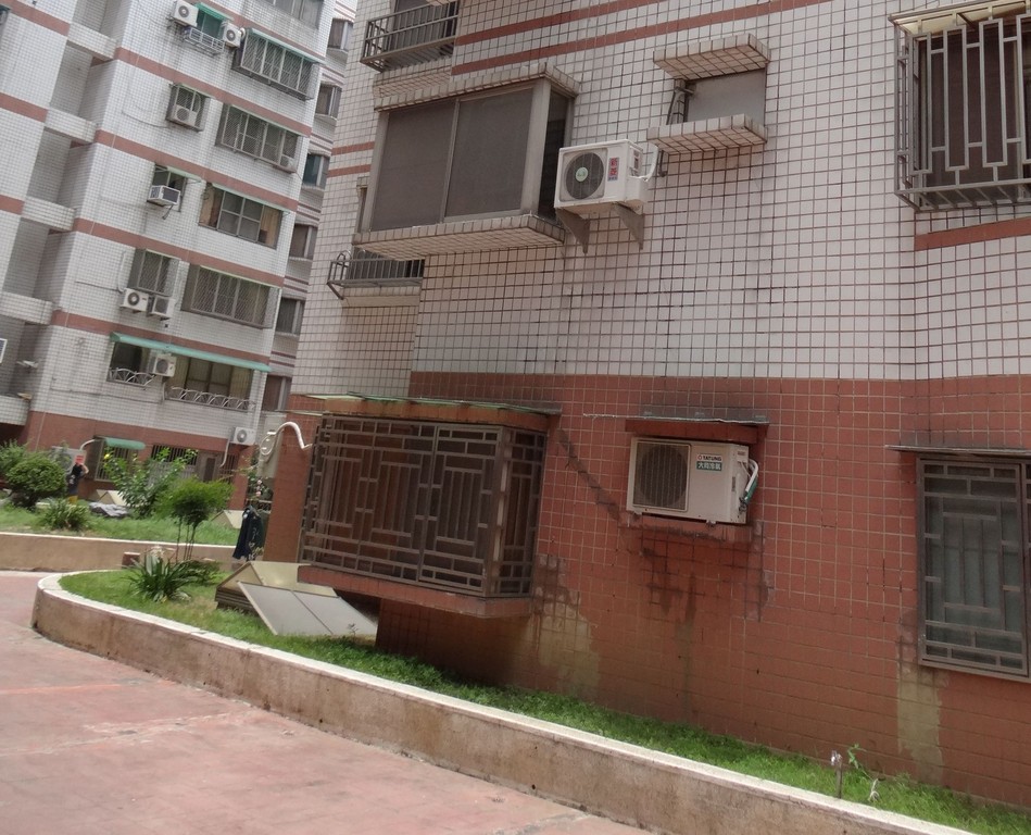 ▲5歲小男童從4樓房間窗戶,連人帶紗窗摔落1樓中庭廣場,傷重送醫急救,有生命危險。(圖/記者林悅攝)