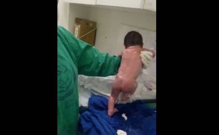 出生就會走路?巴西南里奧格蘭德州(Rio Grande do Sul)1名女嬰出生才幾分鐘,竟然扶著護理師的手臂,嘗試著做出抬腿行走的動作,讓在場所有的醫護人員全看傻了眼。網友Arlete Arantes在26日把影片上傳臉書,立刻引起網友熱烈討論,紛紛稱讚「寶寶真是太可愛了!」