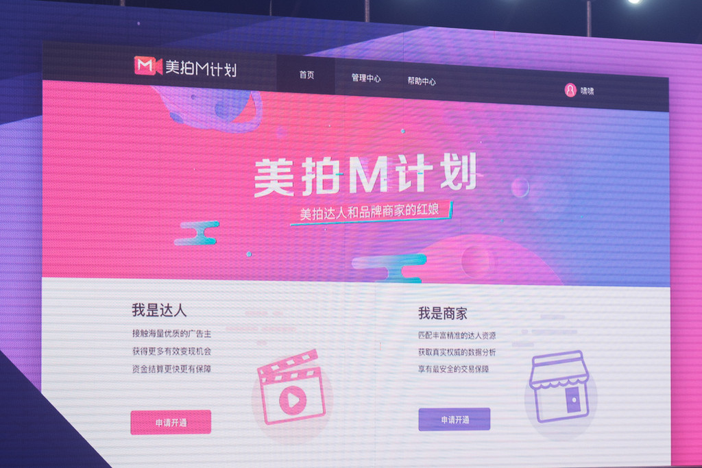 美拍 M 計畫其實不歸在原生 APP 中,而是以網站的方式進行,是以目前美拍主打的短影音置入與廣告策略為出發點。像是廣告主找不到合適的直播網紅推廣產品,亦或是網紅覺得自己有才,但苦無資金注入,甚至是想把流量換現金等需求,都能透過美拍 M 計畫,讓美圖平台出手做媒合,目前 M 計畫也在今日於中國大陸與台灣上架,對想進軍中國的廠商或網紅來說,或許也是一個著力點?