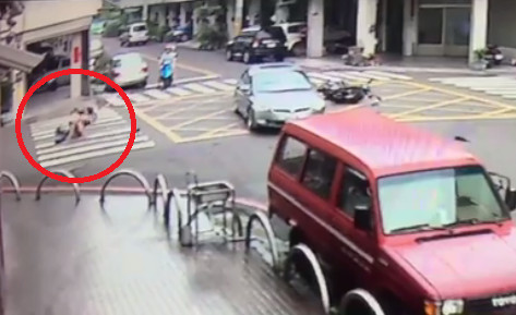 ▲機車衝撞小客車,瞬間空翻重摔在至少3公尺外的地上。(圖/翻攝自沙鹿之美臉書)