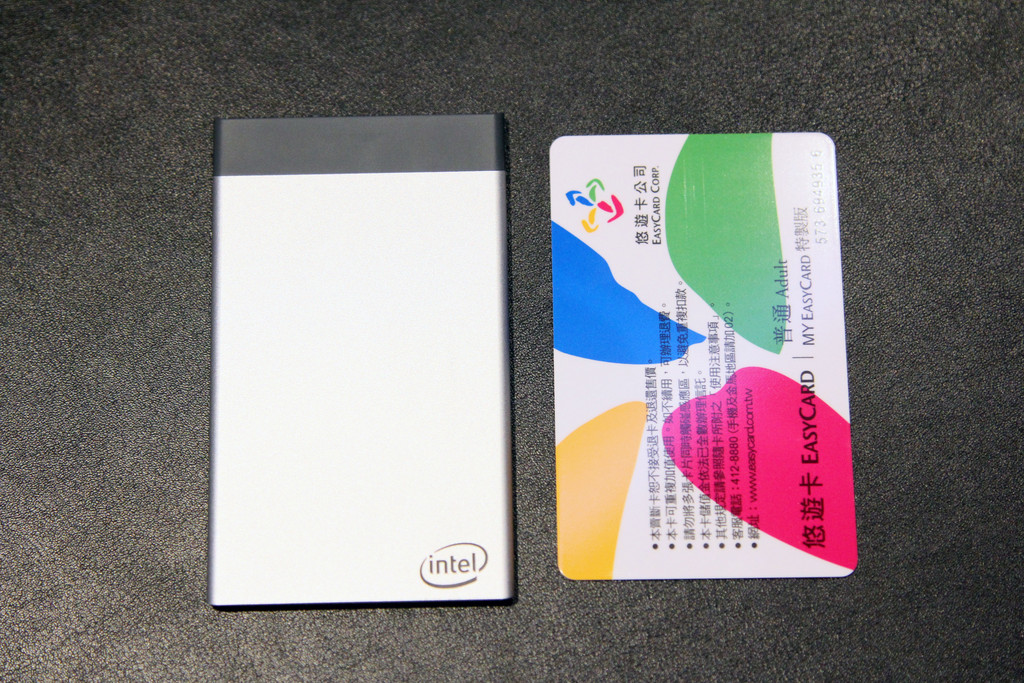 ▲ Intel Compute Card 大小只比悠遊卡大一點。(圖/記者洪聖壹攝)