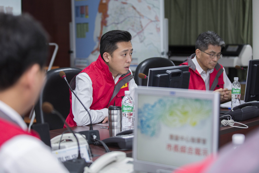 ▲新竹市長林智堅2日主持「新竹市水災應變中心一級開設」第一次工作會議。