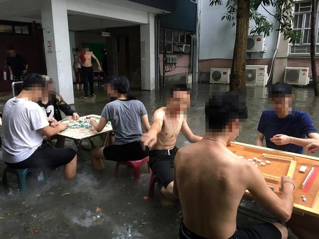 儘管校方考慮師生安全宣布停止上課,早上仍到校上課的人依然要冒雨回家,每次淹水就會有人游泳的「中美湖」這次也不例外,還有人將麻將桌搬到屋外,直接泡在水中展開麻將大戰,讓許多人好奇駐留圍觀,後來還將影片、照片上傳網路,立刻引起網友熱烈討論。
